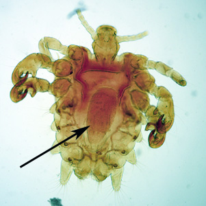Upon returning from a week-long business trip to Las Vegas, a 35-year-old man found what appeared to be insects among various articles of clothing. Due to the recent heightened awareness of bed bugs in hotels, he decided to bring the insects to the local extension office for identification help. The specimens, which measured on average 2 mm in length, were cleared and mounted in balsam for identification by the state entomologist. Figures A and B show two of the specimens. What is your diagnosis? Based on what criteria?