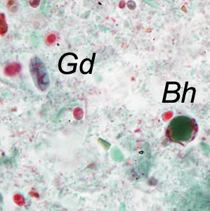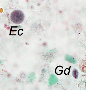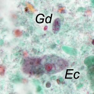 For the last Monthly Case Study for 2014, the DPDx Team thought we would fill your holiday stockings with a plethora of parasites! The following images were taken from a trichrome-stained stool specimen collected from a Haitian refugee. The original report documented several intestinal protozoa. How many can you identify?